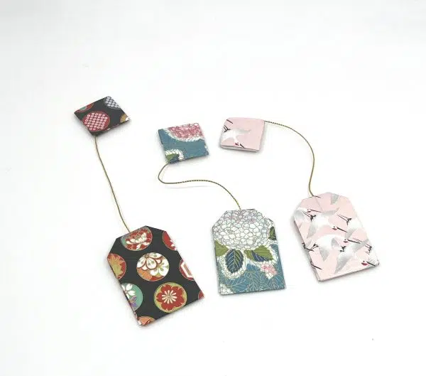 Papier japonais plié Fil doré Dimensions : 6×4 cm étiquette 3×3 cm